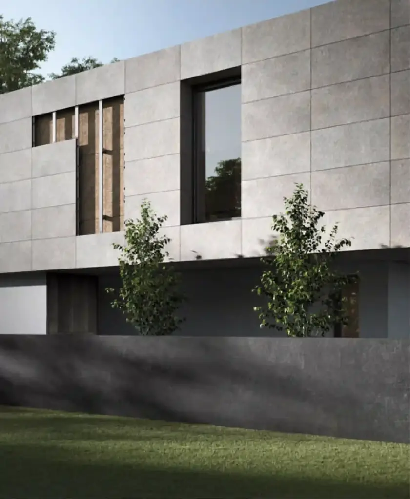 Porselen karolar, yatay tașıyıcı alüminyum profillere poliüretan mastik sıkılarak ve klipslenerek monte edilir.